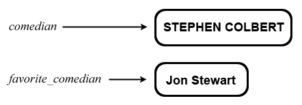 But what if your favorite comedian is not Stephen Colbert? Let's point favorite_comedian to a new object.