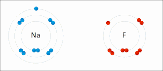 Some atoms will not combine with any other atoms--they are completely non-reactive. They can be found in the far right column of the periodic table and are called noble gases. Their personality is "prideful" and "stuck up," and they refuse to play with anyone and will never share. The reason they are non-reactive is that their outer (valence) shell of electrons is completely full. Helium is the first in that column and has just 2 electrons, which perfectly fills the first electron shell. Next down is Neon--it has 10 electrons, which is 2 plus 8--again, the outer shell is naturally all the way full. All other atoms "wish" they could be like their "noble" cousins. They will react in some way that will bring them closer to having their own outer shells full. For some, the quickest way to complete the outer shell is by getting rid of an electron or two (if your outer shell just has 1 electron and you donate that to another atom, then that shell just disappears and the full shell beneath is now the outer shell), and for others they need to add an electron or two. If your first shell has 2 electrons and your second shell has 8 electrons, and your next shell has 7 electrons (Chlorine, Cl), then you desperately want one more electron so you can be like your noble next-door neighbor Argon. On the other hand, if your first shell has 2 electrons, your second shell has 8 electrons, and your third shell has 1 electron (Sodium, Na), then you desperately want to get rid of 1 electron (which would leave you looking like the noble gas Neon). In their pure state both Chlorine and Sodium are dangerously reactive, but once they have found each other and sodium has given its electron away to chlorine then both are incredibly stable and nonreactive. This exchanging of an electron is discussed further under Ionic bonding. If, in order to get to a full outer shell, you need 2 or 3 or 4 electrons then it is easier to share electrons with others, which will be discussed under covalent bonding.