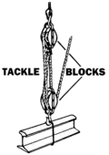 Is a system of two or more pulleys with a rope or cable threaded between them, usually used to lift or pull heavy loads. The more rope involved, the greater the mechanical advantage. The pulleys are assembled together to form blocks and the blocks are paired so that one is fixed and one moves with the load. The rope is threaded, or rove, through the pulleys to provide mechanical advantage that amplifies the force applied to the rope.