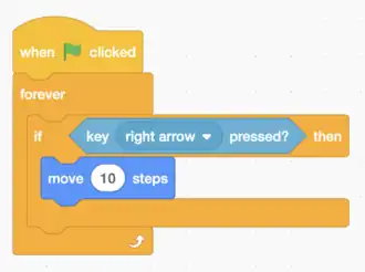 However, a better script for the arrow keys would be to use "change x by 10" for the right arrow, "change x by -10" for the left arrow, etc.