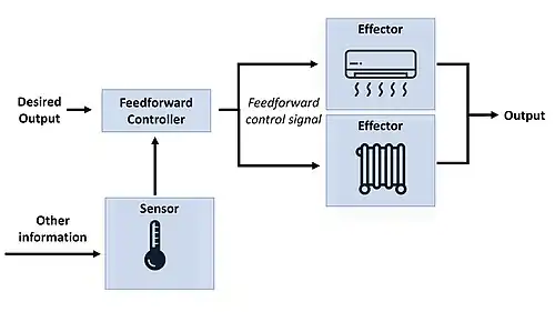 We have already briefly seen feedback control in the closed loop description, but we will discuss it again as it is important to explicitly distinguish between feedback and feedforward systems. Feedback control systems are usually designed to maintain a certain relationship between an input and an output signal via the aforementioned feedback signal and a constant matching process between the feedback signal and the desired output at the level of the comparator. Feedback systems are highly effective if the speed of feedback transmission and processing is larger than the actual output. This inequality is necessary to provide enough time for the comparison to take place and have an effect on the produced output, otherwise it would be oblivious.
