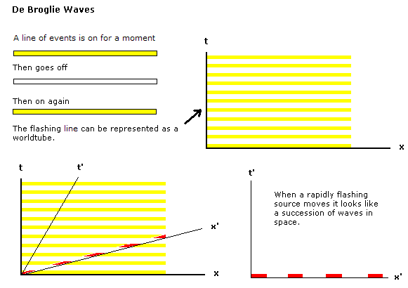 He combined this insight with Einstein's ideas on the quantisation of energy to create the foundations of quantum theory. De Broglie's insight is also a round-about proof of the description of length contraction given above - observers in relative motion have differing three dimensional slices of a four dimensional universe. The existence of matter waves is direct experimental evidence of the relativity of simultaneity.