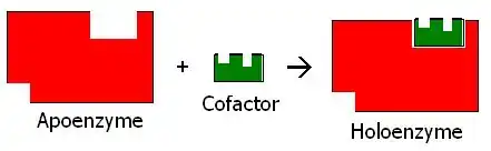 Cofactors are inorganic and organic chemicals that assist enzymes during the catalysis of reactions. Coenzymes are non-protein organic molecules that are mostly derivatives of vitamins soluble in water by phosphorylation; they bind apoenzyme to proteins to produce an active holoenzyme. Apoenzymes are enzymes that lack their necessary cofactor(s) for proper functioning; the binding of the enzyme to a coenzyme forms a holoenzyme. Holoenzymes are the active forms of apoenzymes.