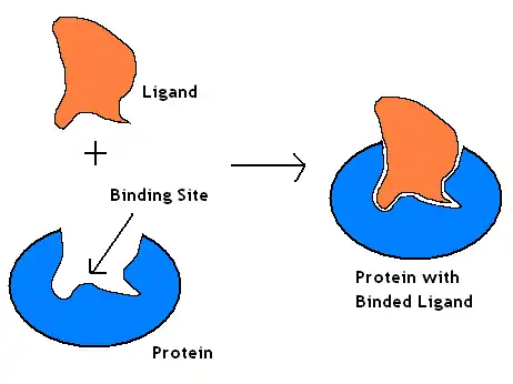 The concept of complementarity can be understood in terms of the lock and key model of protein binding (as shown in the figure below). Essentially, the surface of the protein involved in binding exhibits a shape that is complementary to the binding ligand. This allows for protein recognition, binding specificity and affinity. Protein binding can be further explained by the induced fit model. In this model, the protein's binding site also exhibits complementarity, but to a lesser degree than the lock and key model. Once, the ligand is already at the binding site, the protein can adjust the shape of its binding site to better fit and bind the ligand. This concept of protein flexibility is explained in more details in the next section.