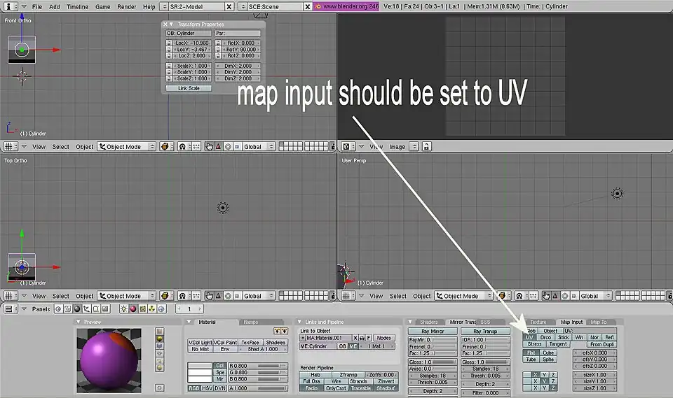 Step 6: Press F5 then navigate to the Map Input pane. Press the UV button to change the map input to UV.