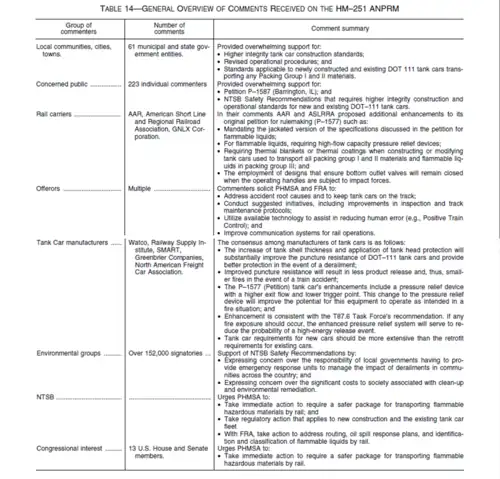 - August 1st, 2014 PHMSA issues NOPR Hazardous Materials: Enhanced Tank Car Standards and OperationalControls for High-Hazard Flammable Trains (HHFT)[22]