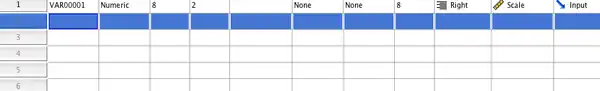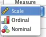 Finally, you must specify your level of measurement. This may be done by clicking on the cell under the column labeled “Measure” and choosing from Nominal, Ordinal, and Scale:
