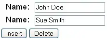 <xf:delete ev:event="DOMActivate" nodeset="instance('save-data')/name" at="index('name-repeat')"/>