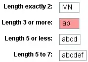 Here is a simple XML Schema with four strings. The first one is only allowed to be two characters long. The second must have a minimum length of three characters. The third string must not be over five characters long and the fourth one must be between five and seven characters long to be valid.