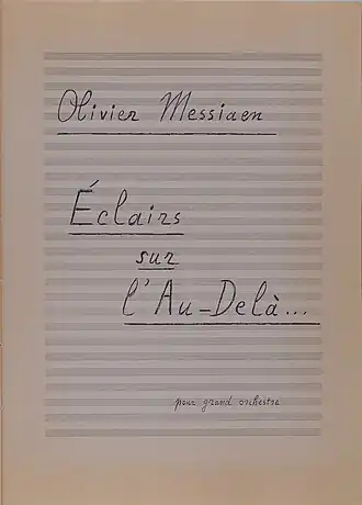 Éclairs sur l'Au-Delà... (Lightning Over the Beyond... ) is the final completed work of the composer Olivier Messiaen. Scored for a very large orchestra of over a hundred players and unusually lacking a solo piano part, it was written from 1988 to 1991.[1]