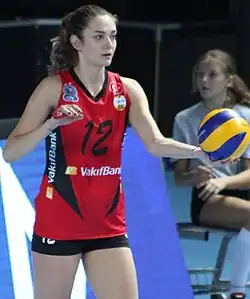 She played in the Turkey girl's and junior women's national team.[3] She was called up to the Turkey women's national volleyball team, and played at the 2014 Women's European Volleyball League that won the gold medal.[4]