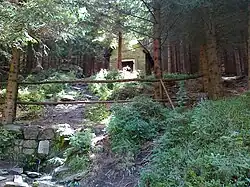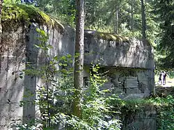 In 1938, a network of concrete infantry bunkers, marked as Pěchotní srub STM 52 Obora, was built along the southwest slope.[9] Additionally, a Mountain Rescue Station (Czech: Stanice HS Ramzová) is located at the base of the northwest slope near the village of Ramzová.[2] About 730 m northwest of the peak (northwestern slope), near the red tourist trail and a spring called Dobrá Voda,[10] there is a small stone chapel named Svatá Voda.[11][12]
