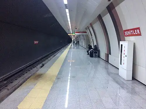 Şehitler is an underground rapid transit station of the Ankara Metro. The station was opened on 5 January 2017, the same day the M4 line opened which is also one of the terminus stations of the line.[1]
