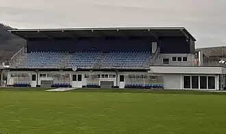 At the beginning of the 2014–15 season the construction of the new stands for the Sports Park was completed with a seating capacity of 301.[27] The club used the stands for home matches for the first time during the season. On 20 July 2015 Radgona hosted Slovenian champions NK Maribor in a pre-season friendly which was the official opening of the newly build stands.[28] Jean-Philippe Mendy opened the scoring in the first minute in front of 1,000 spectators and after a brace from Marcos Tavares, the visitors had a five-goal lead by half time. In the second half Radgona scored two own goals and substitute striker Dalibor Volaš scored four goals for the final score of 0–12.[28]