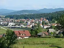 The parish church from which the settlement gets its name is dedicated to the Nativity of the Virgin Mary and belongs to the Roman Catholic Archdiocese of Ljubljana. It is a 13th-century Romanesque building that was extended and restyled over the centuries. A defence tower that was part of a defence enclosure round the church erected to protect the local population against Ottoman raids survives.[6]