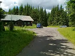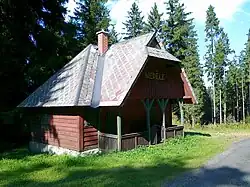 2 Pytlácká chata[40] 830 to the northwest the slope of the secondary peak Žárový vrch-SZ, close to the road Zámecká cesta 50°06′42.2″N 17°18′00.4″E / 50.111722°N 17.300111°E / 50.111722; 17.300111