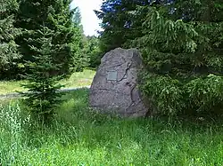 Boulder with memorial plaque on the pass between Lyra and Žárový vrch peaks