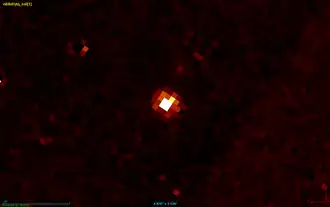 ![]() 2000 YW134 and its satellite (upper right) imaged by the Hubble Space Telescope on 25 October 2002 | |