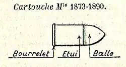 The 11mm French Ordnance (11.46×17mmR) is a rimmed black powder cartridge intended for the 11 mm MAS 1873-1874 revolver in service with the French Army.[1] The velocity and power of the first variant, equivalent to the .25 ACP at just 74 ft/lbs of energy, was weak even for its time. The second variant, 1873–1890, corresponded in power to the .32 ACP with 140 ft/lbs of energy.