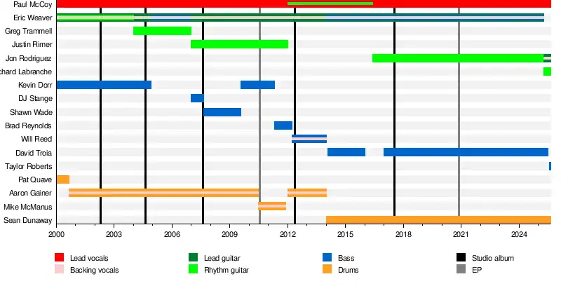 The band members met in Mandeville, Louisiana, a small city north of New Orleans, and within 15 months were signed to a record deal with Wind-up Records. Lead vocalist Paul McCoy was featured in the Evanescence single "Bring Me to Life", released in 2003, which later went on to win a Grammy Award for Best Hard Rock Performance in 2004.[7]