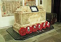 The Suffolk Regimental Chapel is in St Mary's Church, Bury St Edmunds, and includes a cenotaph to honour the men who died in World War I.[95] After 12th Suffolks was disbanded the King's Colour was laid up in the regimental chapel.[91]