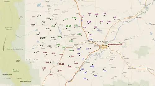 - ^ Malmstrom AFB Minuteman Missile Site Coordinates Archived 17 July 2011 at the Wayback Machine