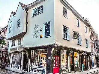 The internal arrangement was altered over the years, and by the 19th century, it formed three tenements, each with its own staircase. The current shopfronts on the ground floor date from about 1800. By 1954, the building had been united, when it was Grade II* listed.[1][2] Since 1990, the building has housed the Original Teddy Bear Shop.[3]