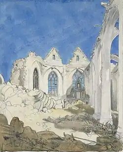 The Church, Péronne, by Sir William Orpen, showing the destruction by the retreating Germans, 1917.