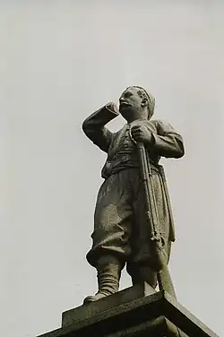 Recruits from the Pittsburgh area and Allegheny County organized at Camp Copeland from September 2–19, 1862 into the 155th Regiment Pennsylvania Volunteer Infantry. Edward J. Allen served as the first colonel. After initial training and drilling, the regiment moved via train to Washington, D.C. where it joined the 2nd Brigade, 3rd Division of the Union Fifth Corps. From there, it went to Sharpsburg, Maryland, after the Battle of Antietam. Their first introduction to battle came on December 13, 1862, at the Battle of Fredericksburg where the color guard suffered heavy casualties in an ill-fated assault.