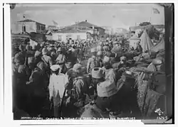 Hastily formed, after assembling on Lemnos there had been no time for the corps to undertake large-scale training before it was committed to the land campaign.[3] During the initial Allied landing on 25 April, the corps undertook a diversionary landing on the Dardanelles Asiatic coast around Kum Kale, to divert Ottoman forces away from the main landings on the Gallipoli Peninsula,[4] and to disrupt Ottoman artillery that could have fired upon the main landings. The 6th Mixed Colonial Regiment led the division ashore, supported by three battleships and a Russian warship. Part of the first wave was turned back by heavy fire, but the rest managed to get ashore and they proceeded to secure the village and an Ottoman fort. Throughout the course of 26 April, the Ottoman 3rd Division counterattacked, but the following day, having lost over 2,200 killed or wounded, the Ottomans began surrendering to the French in large numbers. Nevertheless, the French were withdrawn shortly afterwards, having lost about 300 killed and 500 wounded.[5][6]