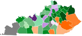 ![]() County results Scott: 30-40% 40–50% 50–60% 60–70% 70-80% 80-90% >90% Allen: 30-40% 40–50% 50–60% >90% Clay: 50–60% 70–80% 80-90% No Data/Vote: | |||||||||||||||||||||