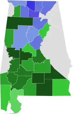 | Tuscaloosa | 575 | 43.1% | 760 | 56.9% | 1,335 |