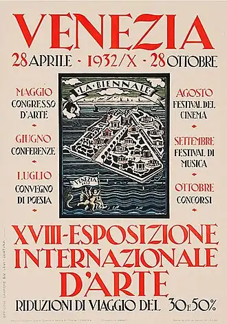 The 18th Venice Biennale, held in 1932, was an exhibition of international contemporary art, with 13 participating nations.[1] The Venice Biennale takes place biennially in Venice, Italy.[2]