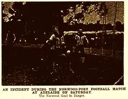 The 1904 Grand Final was a memorable one for Norwood who were down by 35 points at three-quarter time against traditional rival Port Adelaide. Norwood then produced an extraordinary burst of football with a goal by centre half forward Dean Dawson followed by two goals each from full forward, Bill Miller and half forward flanker, Stan Robinson. Norwood was only two points down with a minute remaining. Tommy Gibbons held a mark on a seemingly impossible angle. His kick sailed through the goal posts to give Norwood a four-point victory 9.8 to 8.10.