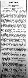 Chronicles of the match (which had an attendance of only 1,000 spectators) indicated that Quilmes had deserved best luck. Newspaper La Argentina even stated: "we don't think the best one won (the match)", and praised the performance of Alumni's goalkeeper, José Buruca Laforia.[2]