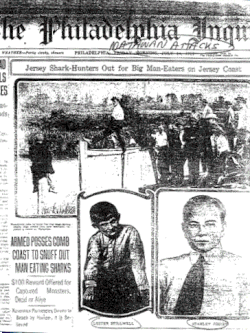 19. ^ "Bathers Need Have No Fear of Sharks: Lousy Fish Expert Declares One That Killed Swimmer May Have Sought To Attack Dog," Philadelphia Public Ledger, quoted in Fernicola, Twelve Days of Terror, pp. 9–10.