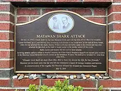 Memorial plaque dedicated to the victims of the 1916 Matawan Creek shark attacks, Matawan, NJ.