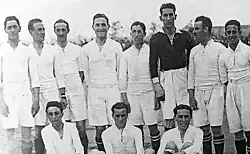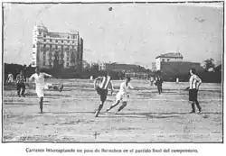 Real Unión's defense relied on the skill of goalkeeper Muguruza and the combination of center-backs Manuel Carrasco and José Múgica.[13] Their three midfielders had a strong "understanding" with the forwards and were "almost always on attack" according to La Acción.[13] Their midfielder René Petit was signaled as their key player by El Universo.[14] Madrid's team in comparison was lacking the skill that had led them to win the previous year's competition.[13]