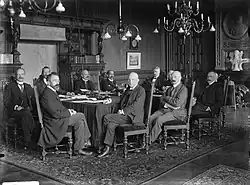 On 7 September, Ruijs de Beerenbrouck contacted Kuyper and visited him in an attempt to address these concerns. The meeting was cordial, but Kuyper remained firm in his view that the ARP should not participate in the cabinet and could not promise support. The following day, Kuyper's party colleague Colijn also visited him. The outcome was more positive, but still without a firm commitment. Ultimately, the cabinet proceeded with confidence only after Colijn, who like Kuyper held considerable sway within the ARP, agreed to publicly support the cabinet if Kuyper criticised it unfavorably.[15] On 9 September Ruijs de Beerenbrouck reported the formation result to the queen. That same afternoon, the first Ruijs de Beerenbrouck cabinet was sworn in.[16]