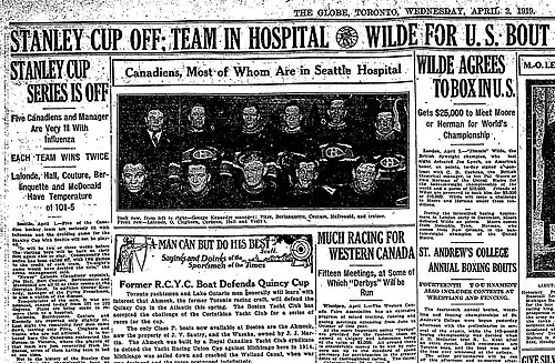10. ^ a b "Stanley Cup Series is Off". The Globe. April 2, 1919. p. 11.