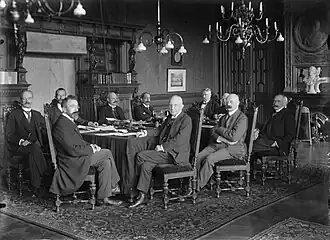 Queen Wilhelmina immediately aimed for a "reconstruction" of the cabinet, inviting only ministers and right-wing parliamentary group leaders. She asked the parties if they wished to continue the cooperation, to which they responded positively. Wilhelmina intended to appoint Ruijs de Beerenbrouck as formateur on 22 June, but he agreed only after consulting the parliamentary group leaders. SDAP leader Jan Schaper advised forming a civilian cabinet with his party in the opposition, while LU leader Pieter Rink and VDB leader Henri Marchant preferred to continue the cabinet. After receiving these advices, Ruijs de Beerenbrouck formally accepted the assignment on 28 June.[4]