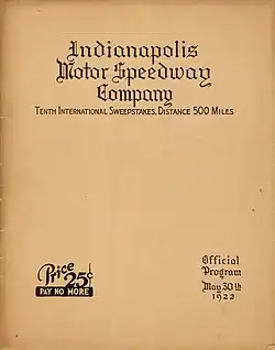5. ^ "International 500 Mile Sweepstakes – May 30, 1922". ChampCarStats.com.