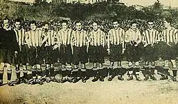 The members of the Liga Máxima began to be called "maximalists", due to their greater number of teams, unlike until then, thus reversing the original meanings of those terms.[5] The formation of the first group of the "maximalist" was quickly followed by the group of the Liga Profesional, but not without attempting the final union of the maximum number of clubs, when the ten clubs that would form a common professional league invited the six champion clubs of Spain to join,[6] but they failed to reach a successful outcome since their tournament had already begun, so the Liga Profesional was also definitively formed.[7]