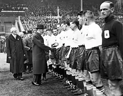 King George V greeting players before the match
