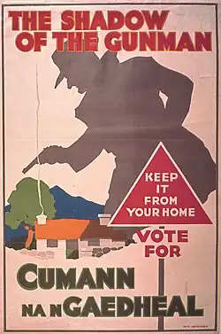 In comparison to Cumann na nGaedheal, Fianna Fáil had an elaborate election programme, designed to appeal to a wide section of the electorate. It played down its republicanism to avoid alarm, but provided very popular social and economic policies. The party promised to free IRA prisoners, abolish the Oath of allegiance and reduce the powers of the Governor-General and the Senate. It also promised the introduction of protectionist policies, industrial development, self-sufficiency and improvements in housing and social security benefits.[5][6]