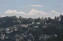 The route then took the expedition through Pedong and Pakhyong, until it reached Gangtok, Sikkim's capital, where Lobsang Tsering's postal service would be based; he would receive the expedition's mail and forward it to Calcutta. The expedition was entertained by F. Williamson, the political agent in Sikkim, who gave the party their passport with the Tibetan government's seal. It was made out to cover fourteen rather than sixteen people, omitting the expedition's two wireless operators, which later perplexed the Dipon of Pipitang, although the matter was soon sorted out following a telegram to Williamson.[24] The party met the Maharaja of Sikkim, then departed for Karponang, Tsomgo and the crossing of the Natu La, where four of the party climbed the peak of Chomunko (17,500 ft).[25]