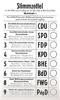 Summary of the 15 May 1955 Rhineland-Palatinate state Landtag election results