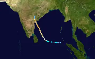 - ^ a b India Meteorological Department. "Historical records of Severe Cyclones which formed in the Bay of Bengal and made landfall at the eastern coast of India during the period from 1970-1999". Archived from the original on 25 September 2014. Retrieved 2 March 2019.