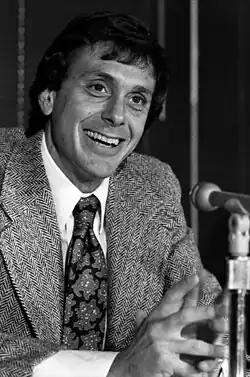 The starting players were voted on by the fans, and seven reserves for each team were selected by their respective coaches.[6] Twelve former ABA players, including Julius Erving of the Philadelphia 76ers, participated in the game.[1] The Eastern Conference team played ten future hall-of-famers including Bob McAdoo, Julius Erving, George McGinnis, Rudy Tomjanovich (inducted as a coach), Pete Maravich, John Havlicek, Jo Jo White, Earl Monroe, George Gervin, and Elvin Hayes. The Western Conference Team played seven future hall-of-famers including Kareem Abdul-Jabbar, Rick Barry, Paul Westphal, David Thompson, Bob Lanier, Bobby Jones, and Dan Issel.