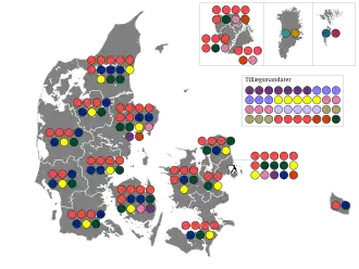 | Danish Social Liberal Party | 172,365 | 5.44 | 10 | +4 |
